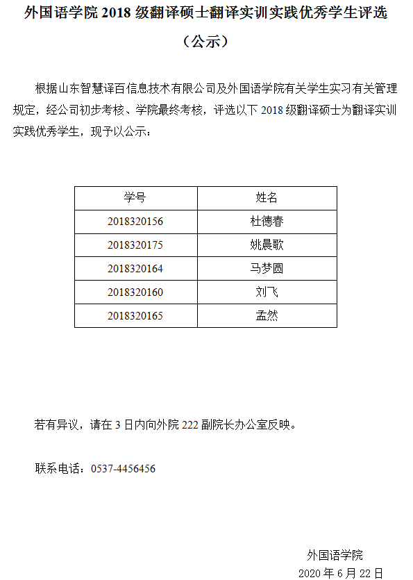 爱爱网 2018级翻译硕士翻译实训实践优秀学生评选公示