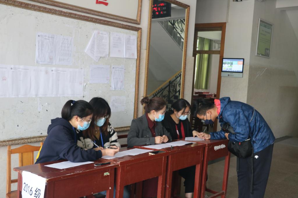 全体辅导员及团委学生会部分学生干部为考生登记信息并维持进场秩序,为未佩戴口罩的同学提供防疫用品,保障考试的顺利进行,并鼓励考生们放平心态,沉着应对。