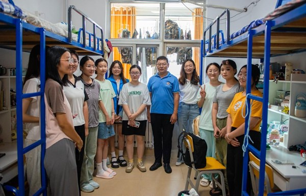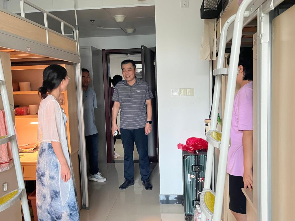 党委书记费沂涛、院长秦洪武、党委副书记王作茂、副院长王洪明、副院长邢加新及学院一众辅导员深入宿舍,与新生们展开亲切对话。