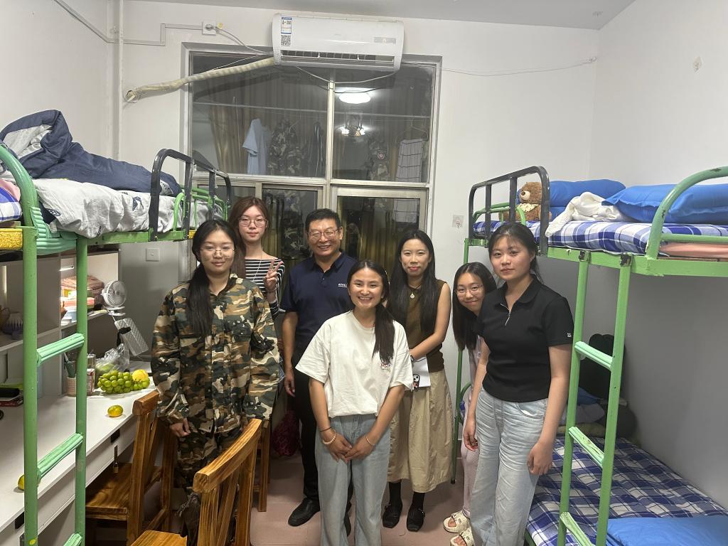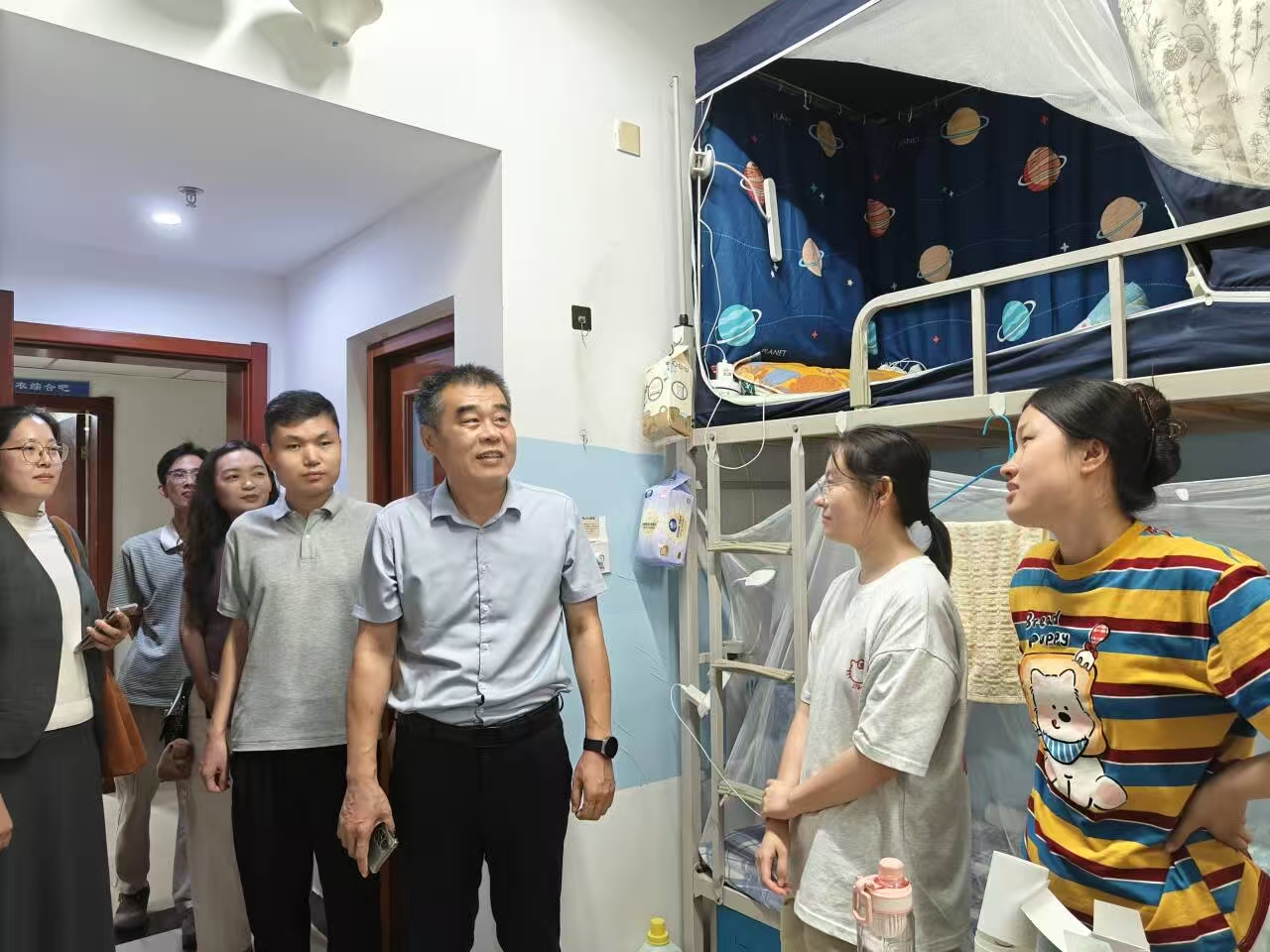 为深入了解新生入校后的生活与住宿情况,帮助他们尽快适应大学生活,9月6日晚,爱爱网 党委书记费沂涛、党委副书记王作茂、副院长邢加新、团委书记赵文彬、2025级研究生辅导员张老师及2025级本科生辅导员姜歆玥深入宿舍,走访慰问2025级研究生及本科生。