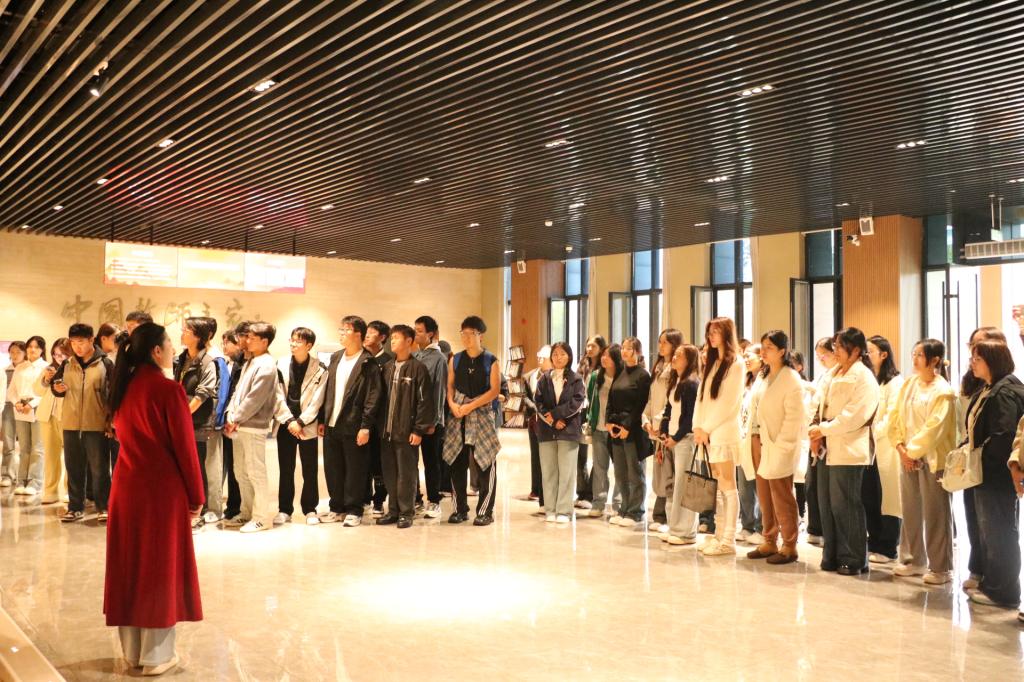 作为全国首座以教师为主题的博物馆,中国教师博物馆为新生提供了沉浸式感知中国教育史的课堂。在专业讲解员的引导下,同学们从弘道门出发,依次参观了“教师之史”“教师之道”“教师之魂”三个展厅,从教字构成、能者为师、孔子思想、教师革命、知行合一等几个方面生动诉说中国教育的源远流长与世代传承。一件件老旧的教具,一本本泛黄的手札课本,展现了中国教育从师道初振、杏坛讲学到现代化科学教育的深刻历程。参观过程中,同学们对师道传承有了直观而深刻的理解。