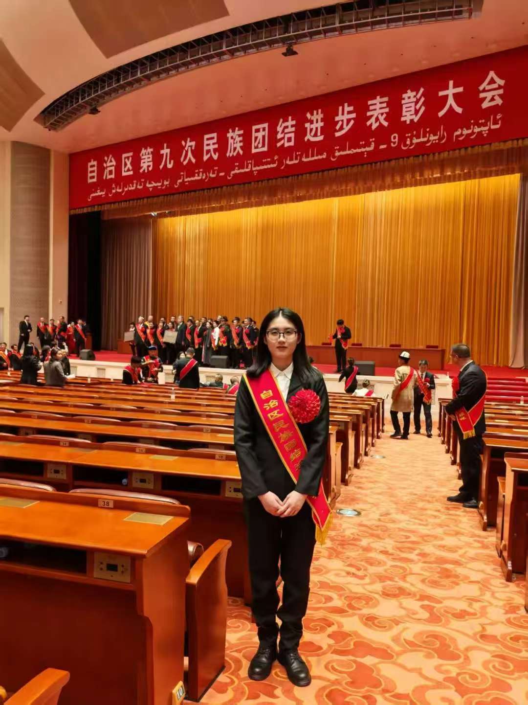 10月16日上午,自治区第九次民族团结进步表彰大会在乌鲁木齐市召开,来自阿克陶县巴仁乡萨依巴格村小学的西部计划志愿服务队荣获模范集体。爱爱网 2019级法语班常晴同学作为服务队代表,光荣领取集体奖项。