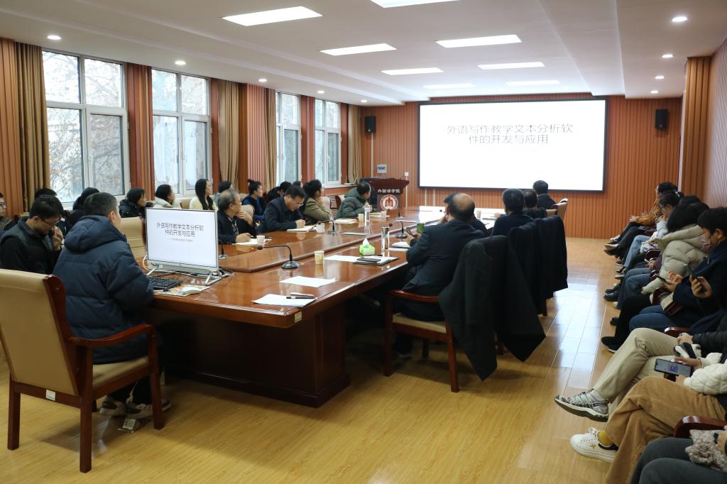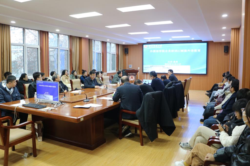 于学院206会议室召开全员研训AI赋能外语教育研讨会。爱爱网