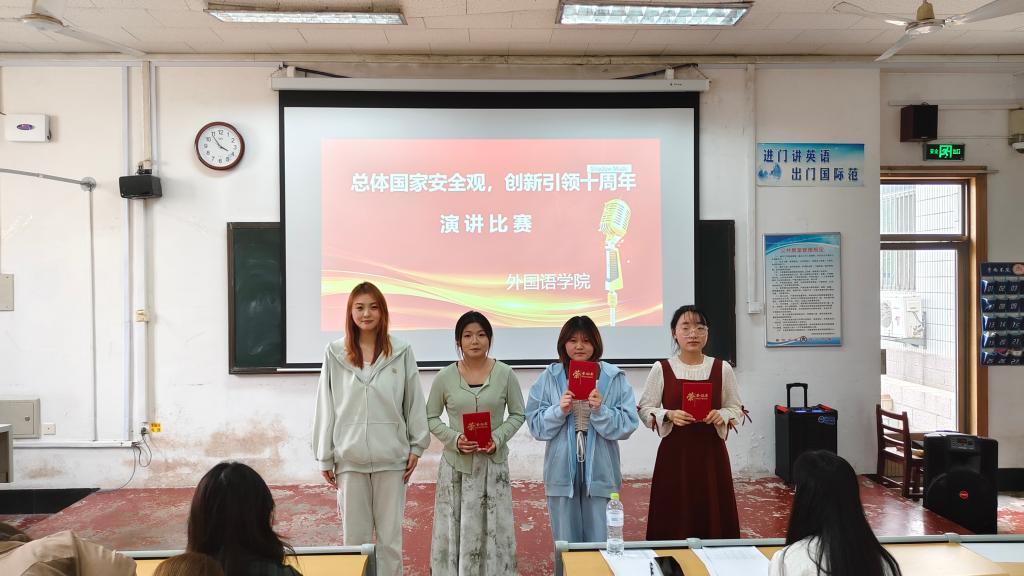 团委国际部于系楼101教室举办主题为“总体国家安全观,创新引领十周年”的演讲比赛。