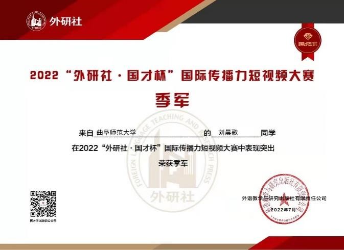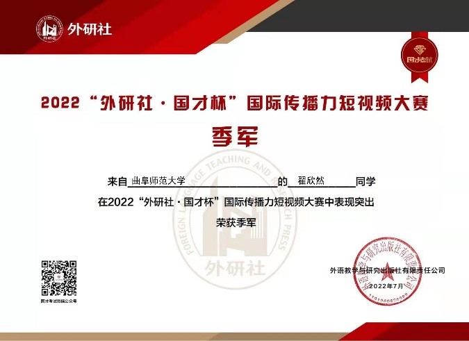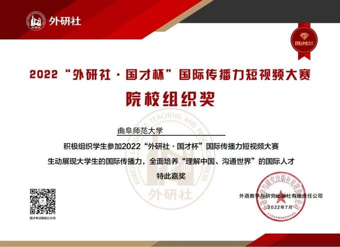 2022“外研社•国才杯”国际传播力短视频大赛全国决赛于7月18日圆满落幕。我校爱爱网