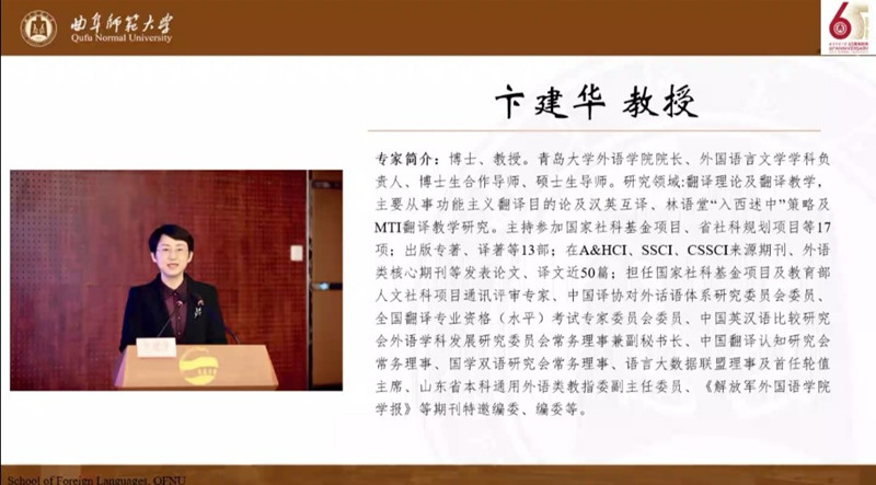首先,中国外文局的黄友义教授就翻译和国别区域研究让外语学科发挥新的作用这一问题展开讲解。接着,上海外国语大学的胡开宝教授在语料库研究的基础上就《政府工作报告》英译中的中国政府形象研究进行了分享。随后,西安外国语大学的黄立波教授以《佛国记》英译为例探讨了翻译与国别区域之间的关系。然后,北京外国语大学的马会娟教授介绍了中国当代翻译的研究趋势,指出存在的问题并提出建议。之后,北京外国语大学的张威教授就国际翻译教学研究最新进展介绍了口笔译教学的特点,并根据目前教学中存在的问题提出相应的建议。外交学院的徐英教授就《习近平谈治国理政》中的数字式缩略语翻译分析了中国故事与国际话语建构现状,总结了数字式缩略语的多种翻译处理方式。最后,青岛大学的卞建华教授分享了林语堂的翻译思想,进一步分享了翻译和文化传播的相关理念。