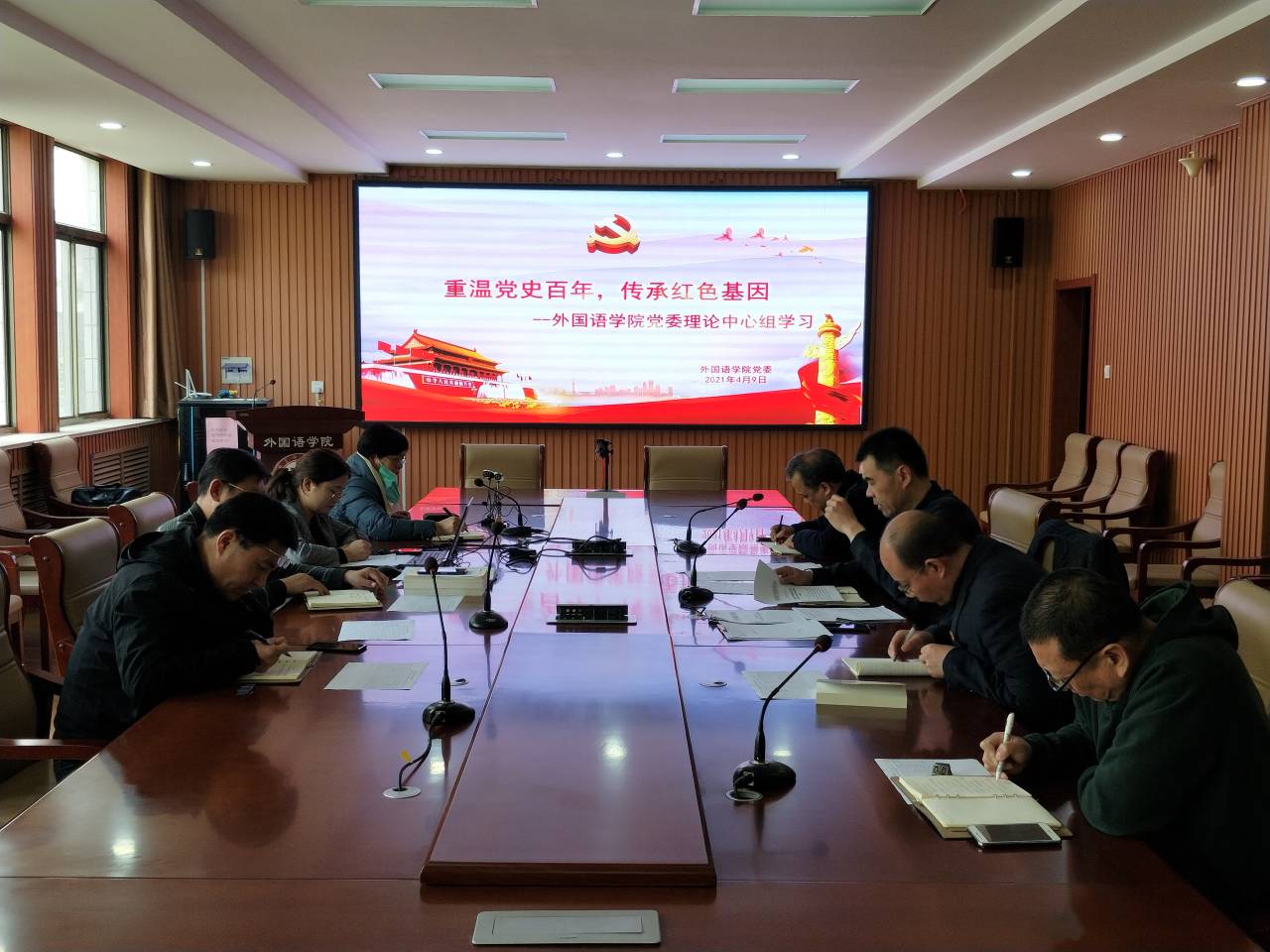 党委理论学习中心组在206会议室进行2021年第4次集中学习。会议由学院党委书记费沂涛主持,中心组全体成员参加。