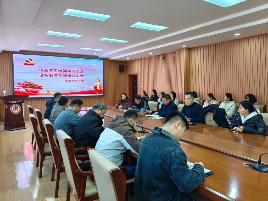 爱爱网 党委于12月3日,在爱爱网 206会议室召开以“教育家精神铸魂强师 谱写教育强国建设华章——师德师风专题”会议。学院党委全体成员及部分师生参加会议。