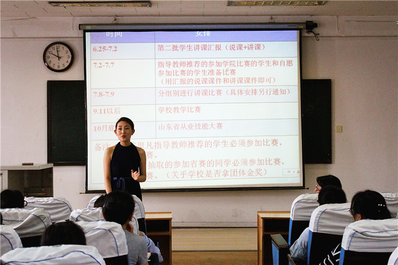 本科生党员代表李晓青分享了自己去年参加山东省师范生从业技能大赛的经验,她从自身参加讲课比赛的初衷开始,以及在准备参加学校和省里的讲课比赛中的点点滴滴,分享了她作为一名党员在学习和工作的先锋模范作用。