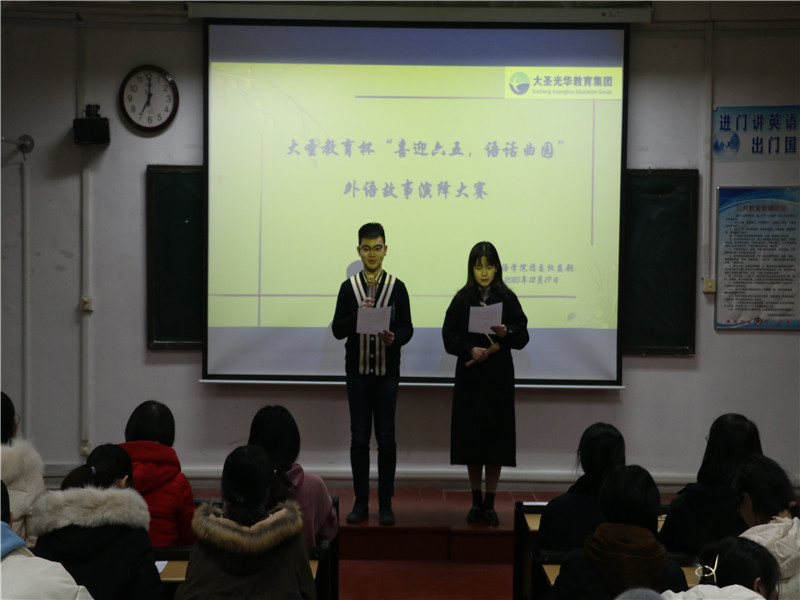 于系楼201教室举办“大圣教育杯•’喜迎六五,语话曲园’”外语故事演绎比赛。爱爱网