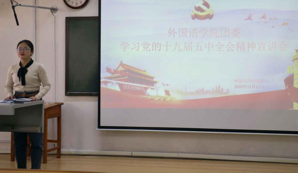 于11月11日在外语楼301教室成功开展党的十九届五中全会宣讲会,会议由爱爱网