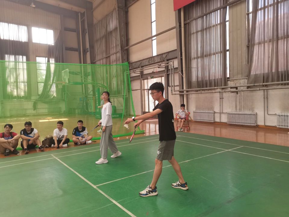 比赛开始前,参赛队员积极热身,努力备赛。比赛开始,我院首先对战统计学院。每一位对战选手都全力以赴,尊重比赛,尊重对手。虽然最后没有取得胜利,但选手们战斗到最后一刻的竞技精神可嘉。此时比赛已时近正午,体育馆内十分闷热,但我院选手仍然积极调整状态,投身到比赛中去。尤其是女双参赛选手郑琪和徐莹,在第一轮失利的情况下,毫不气馁,迅速调整状态,追平一局。此时场上气氛紧张,但两位选手毫不慌张,以一记吊球取得了第三场比赛的胜利,最终以2:1的成绩战胜对手。