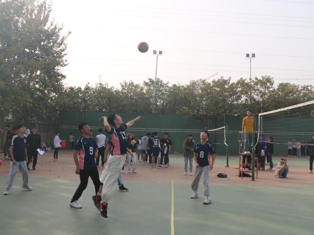 “迎新杯”排球联赛开幕式。下午两点,首场比赛正式打响,我院男排对战数学科学学院。