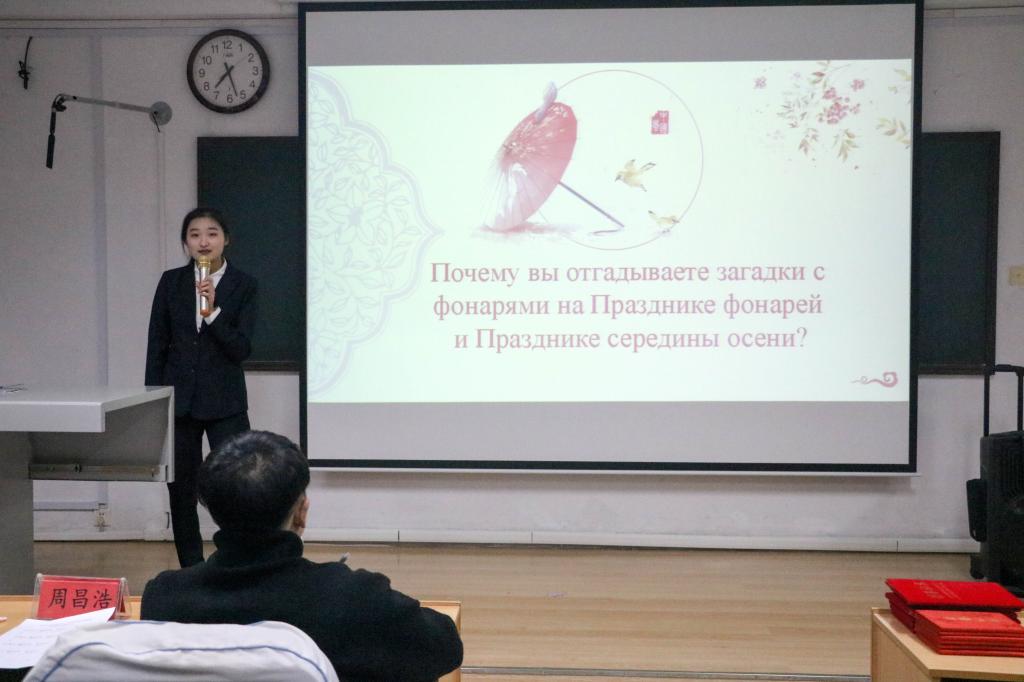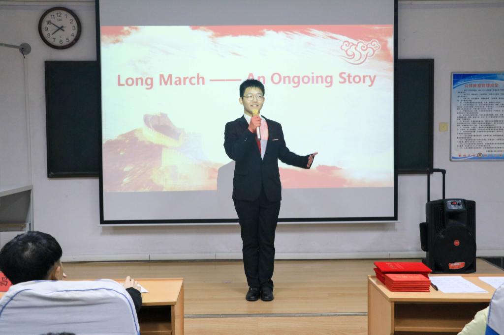 本次大赛进行主题演讲,选手们自选主题,演讲语种分为英语、俄语和法语。各位选手围绕中国优秀传统文化、民族精神等主题进行了精彩纷呈的演讲,展现出当代大学生积极昂扬向上的精神风貌。其中,英语组选手刘金路的演讲《Long March —— An Ongoing Story》不仅向大家讲述了新中国成立以来的发展历程,而且深刻诠释了中国文化精神,赢得了广泛好评,其他各位选手的表现也非常出色。经过激烈角逐,刘金路等三位同学凭借他们精彩的表现荣获一等奖,管健等四位同学获得二等奖,祖筱淼等六位同学获得三等奖。