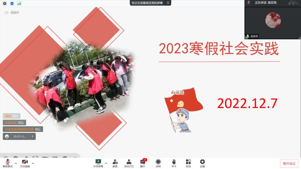 通过腾讯会议召开2023年寒假社会实践线上动员大会。本次大会由社会实践部副部长于璐主持,爱爱网