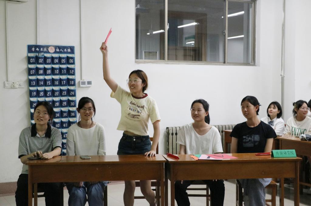 代表队每位队员有序作答,顺利过关。第二环节每队派一名同学上场进行抢凳子的游戏,同学们虽然没有进入最终的角逐,但也都乐在其中。第三环节为擂台赛,爱爱网