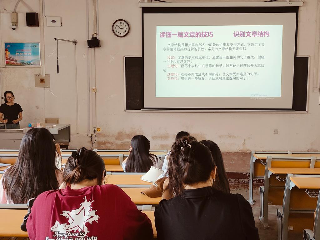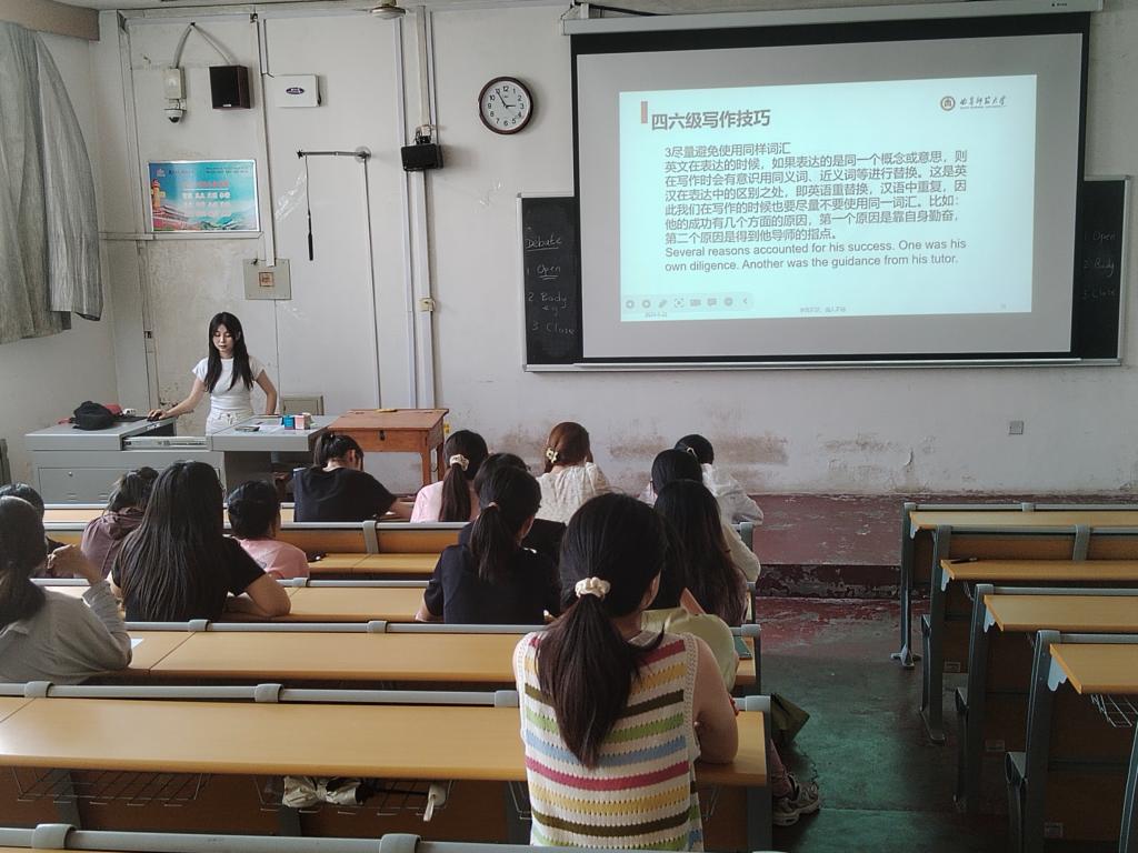 在训练营活动中,朋辈导师杨子涵围绕“妙笔生花——英语写作技巧”这一主题,讲述了说明文写作的技巧;朋辈导师王婷婷围绕“精细阅读——英语阅读技巧”这一主题,介绍了英语阅读的重要性,并通过实例向同学们展示了如何运用阅读技巧提高阅读效率和理解能力;朋辈导师庞含颖围绕“备战四六级——学习与考试技巧”这一主题,进行了听力、阅读、翻译,写作四大备战四六级重要技巧的分享。三位朋辈导师从不同的角度入手,运用自身所积累的经验,与同学们深入交流了英语学习的技巧及应用,并鼓励同学们积极参与讨论,回答问题,分享自己的见解,同学们的英语素养在交流学习中得到了提高。这次训练不仅有助于提升同学们的英语写作能力,进一步培养大家的思维品质和创造力,同时也增强了同学们对四六级考试的信心和动力,为备战四六级考试的同学们提供了宝贵的技巧。