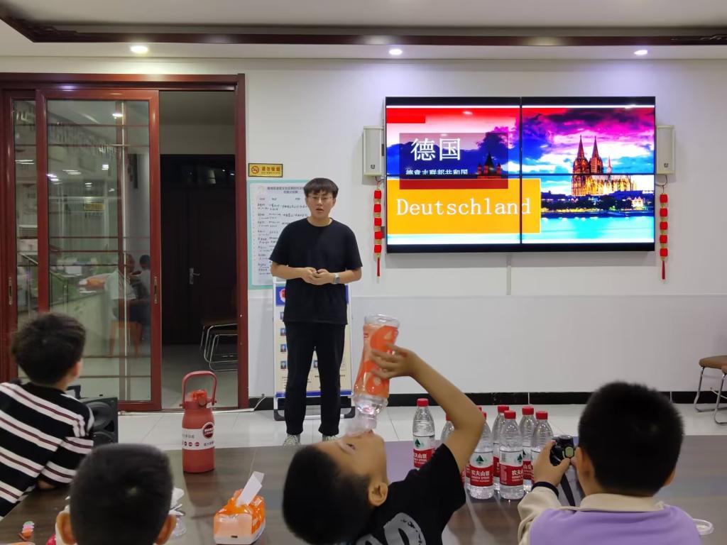 不同语种的学生纷纷登台,进行了精彩的语言及文化分享。首先,英语组的学生剖析了中西方饮食文化的差异,主要对比了中西方的餐具与食物差异。接着,法语组的学生分别介绍了法国巴黎、尼斯和普罗旺斯的建筑、景色及独特文化,带大家领略了浪漫法国的魅力。随后的互动游戏“数字抱一抱”,更是将活动氛围推向高潮,小朋友们根据喊出的数字迅速抱团,现场充满了欢声笑语。游戏过后,俄语的两个小组接力分享,使大家对俄罗斯这个神秘的国度有了更加全面的认识。德语组的分享聚焦于德国食物,从传统的香肠到各式各样的面包。最后,日语组的精彩讲解,使大家置身于日本的独特美学之中。