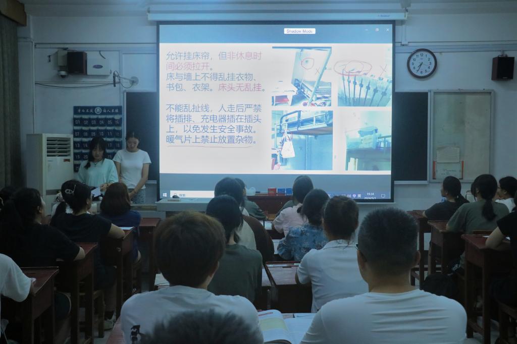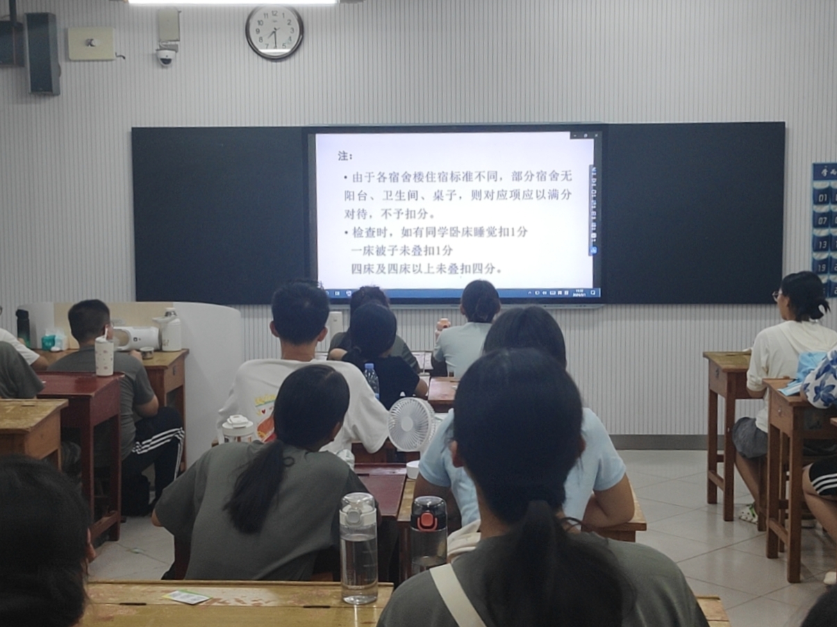 本次大会系统全面地为2024级新生讲解了宿舍内务整理问题,说明了宿舍生活标准与规范。相信在本次会议结束后,同学们会将宿舍内务整理明细与查寝规则内化于心,外化于行,度过更加舒适安全的大学生活。