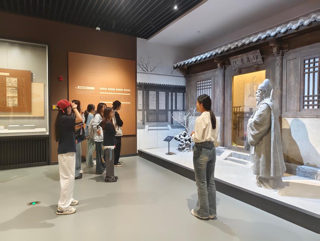 活动当天,在专业讲解员的带领下,同学们有序参观了中国教师博物馆。馆内丰富的历史文物,全方位呈现了中国教师职业自古代萌芽到现代发展的壮阔历程。从孔子杏坛讲学的典故,到近代教育先驱为教育事业奔走的事迹,每一件展品背后的故事,生动诠释着教师职业“传道、授业、解惑”的深刻内涵。学院特别安排了朋辈领航环节,各年级的优秀学生代表化身“朋辈导师”,结合自身学习经验,在博物馆各展区与同学们展开互动交流。