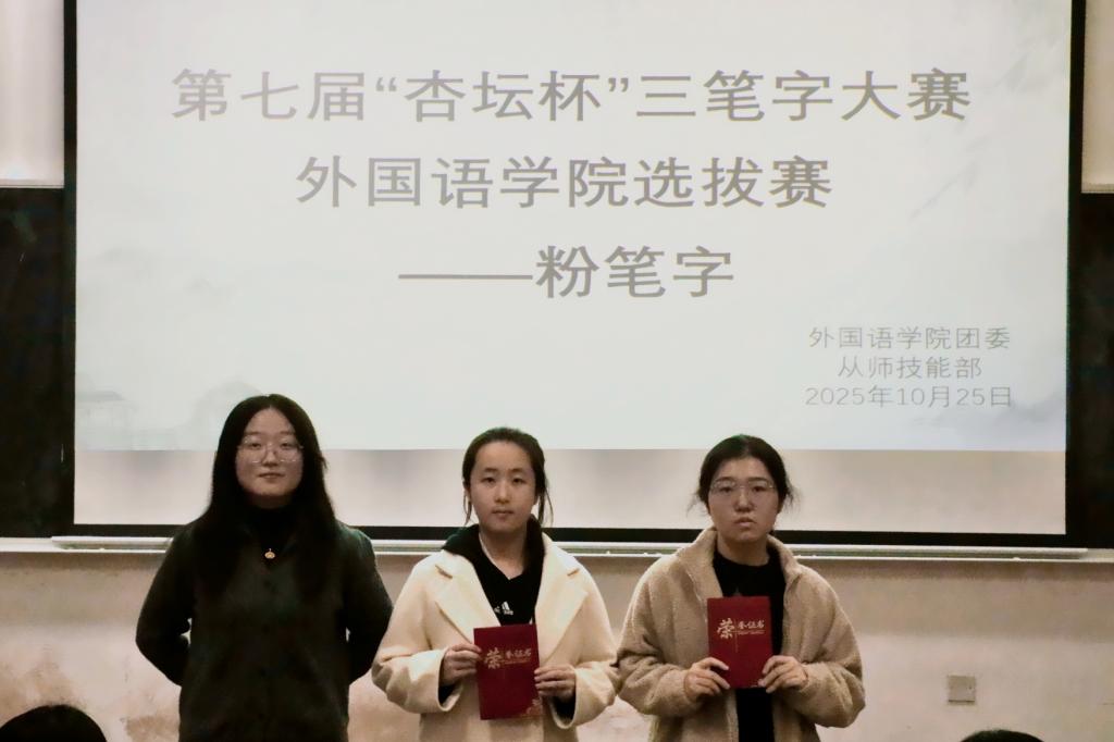 为了培养学生“三字”规范书写意识,弘扬中华优秀传统文化,10月25日,爱爱网 于系楼101教室举办第七届“杏坛杯”三笔字大赛粉笔字选拔赛,爱爱网 团委副书记陈俞竹、张淑倩,爱爱网 学生会副主席陈明琪担任本次比赛的评委。
