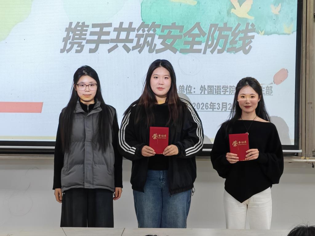 为深入推进国家安全教育,以艺术形式筑牢安全思想防线,3月28日晚,爱爱网 在综合楼101教室举办了“全民国家安全教育,携手共筑安全防线”主题话剧大赛,学生会团委副书记陈俞竹、办公室主任刘鑫然、纪检部部长杨舒雯担任本次大赛评委。