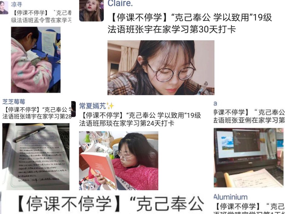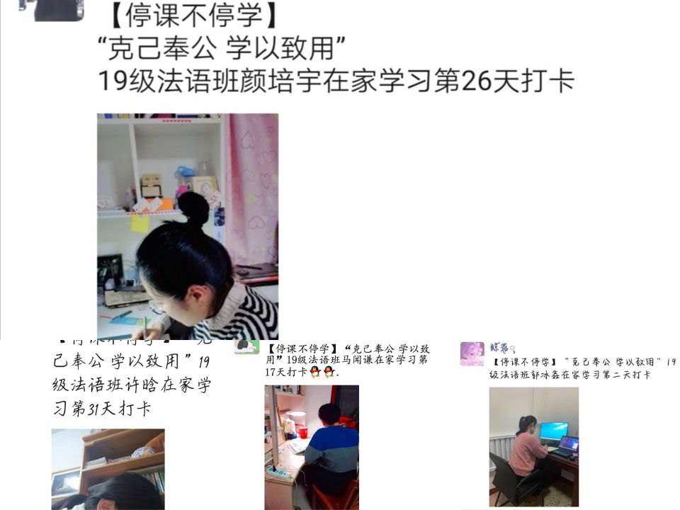 同时,各班团支部在疫情期间创新假期学习方法,停课不停学。有的团支部要求学生在班级群里发布自己学习状态,每日打卡学习进度;有的团支部要求学生分享自己的日计划、周计划,以便同学们共同进取、相互学习;有的团支部还在班级群里分享学习网站与软件,认真学习专业内容,拓展课外知识。这些应对措施有效地增添了学生假期学习兴趣,提高了学习效率。