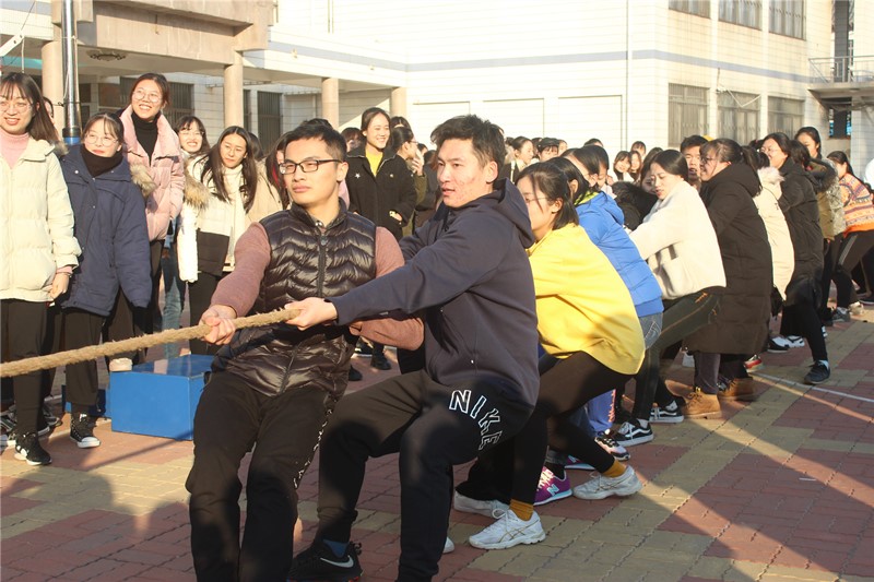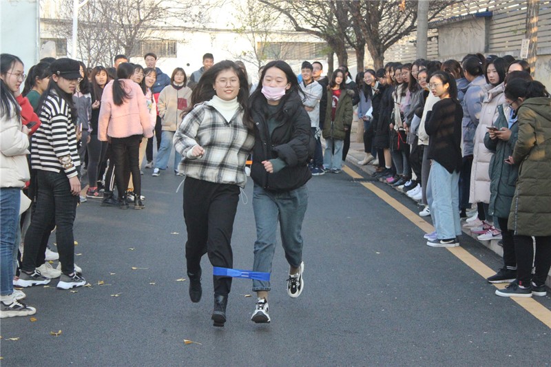 团委书记王旖旎老师出席本次运动会并发表讲话,在致辞中王旖旎老师谈到“12.9”运动精神,着重强调了本次运动会的意义,并祝愿每一位同学在本次运动会中有所收获。在体育部副部臧树森同学详细介绍了比赛规则后,本次趣味运动会拉开帷幕。本次趣味运动会比赛项目丰富多样,包括年级拔河比赛、年级跳大绳比赛、两人三足、个人定点投篮比赛、背对背夹球比赛、双人排球对垫比赛和趣味接力跑闯关。双人背夹气球比赛作为不同于往年的全新比赛项目尤为引人注目。背夹气球比赛看似简单,实则考验了每一组参赛选手的身体协调性。配合绝佳的小组,稳步前进,有失误的小组,气球虽破,但依旧欢声笑语。运动场上,冬韵风清,暖阳正好。参赛选手们全身心投入愉快的比赛之中,尽情享受趣味运动会的乐趣。选手们跃动的身影、喜悦的喝彩,观众们齐声的助威,点燃了冬日里的激情!经过一系列角逐,17级拿下年级拔河和年级跳大绳两大项目一等奖,19级焦亚蕊和赵跃同学获得背对背夹球项目一等奖。