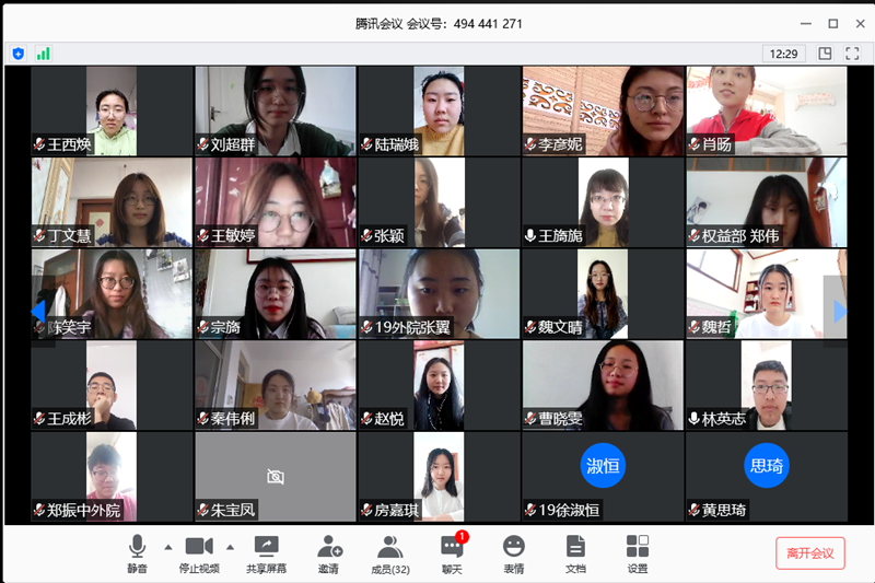 会议伊始,王老师指出了前期学院线上活动举办过程中出现的问题,希望各部长带领本部门成员积极做出整改,在之后的活动中能够将工作做的更加出色。同时王老师提醒大家要协调好学习与工作的关系,兼顾工作与学习。学生会主席金文政指出各部长要对内团结干事、增强部门凝聚力,对外要展示良好的学院形象。团副刘华、胡文霞希望大家提出新的想法,不断创新线上活动内容与形式,更好地丰富同学们的学习与生活。各部门部长在经验交流与分享的过程中一致认为,举办线上活动时要认真撰写策划,从细节处传递活动精神,提高同学们参与活动的积极性,同时也要预想活动中可能存在的问题,并做好相应措施。最后,本次会议在成员们的互相鼓励下圆满结束。