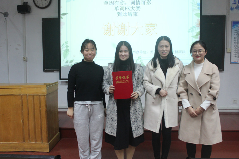 于系楼201教室成功举办“单因有你,词情可彩”单词PK大赛决赛。2019级辅导员张晓老师出席了本次比赛。