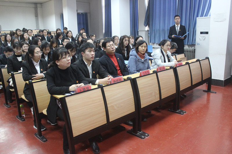 于系楼201教室举行2020届学生会换届大会,党委副书记王作茂、团委书记王旖旎、2017级辅导员冀玉珍老师、2019级辅导员张晓老师、校学生会主席杨镇铭同学出席本次会议。学生会团委副书记郑琪同学担任大会主持人。
