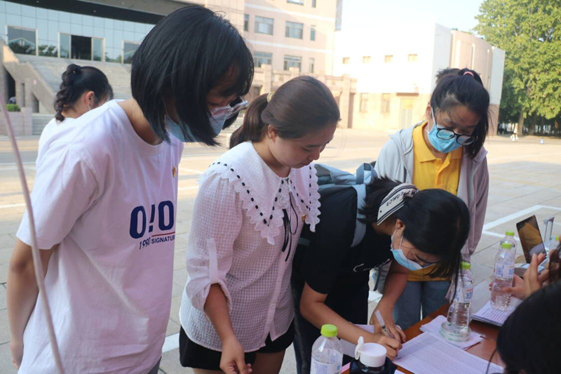 9月10日我院迎新工作在孔子文化广场和各公寓楼报到点开展,在迎新报到现场,服务队的同志们胸前佩戴党徽,主动亮明身份,以积极认真的态度对待各个迎新点的值班工作,用最热情的服务迎接每一位新生的到来,用实际行动践行党员的责任与义务,为新生树立好榜样。从新生报到点到宿舍楼前,有“二对二”师哥师姐的全程陪伴,更有服务队党员同志们的热情照顾,让每一位新同学在踏入校园之际,就感受到学院全方位的热情与温暖。