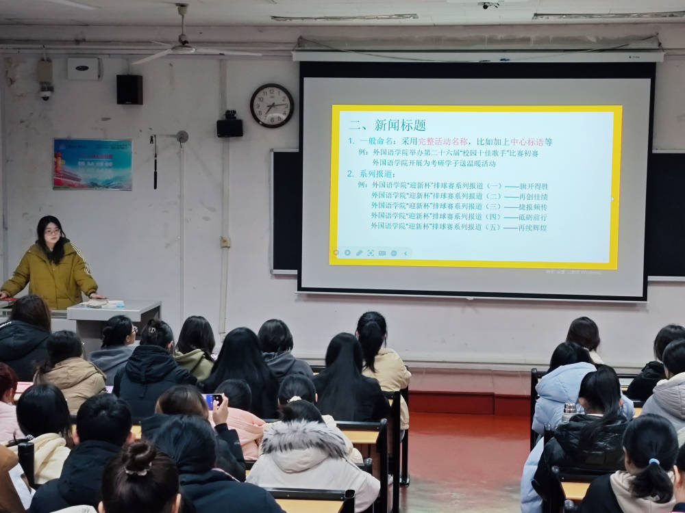 本次培训大会包含活动新闻撰写、部门工作费用报销、活动量化表格的编辑及提交等具体要求,分别由爱爱网 团委宣传部和团委办公室进行宣讲培训。大会伊始,爱爱网 团委办公室副部长孙凌洁讲解办公室活动量化表提交的各项要求,明确表格编辑的相关细节。随后,团委宣传部副部长于子涵介绍新闻撰写的注意事项,为同学们提供具体范例进行参考。最后,团委办公室副部长朱晚霞强调报销的具体流程,清晰地向同学们介绍了需关注的各项要求。