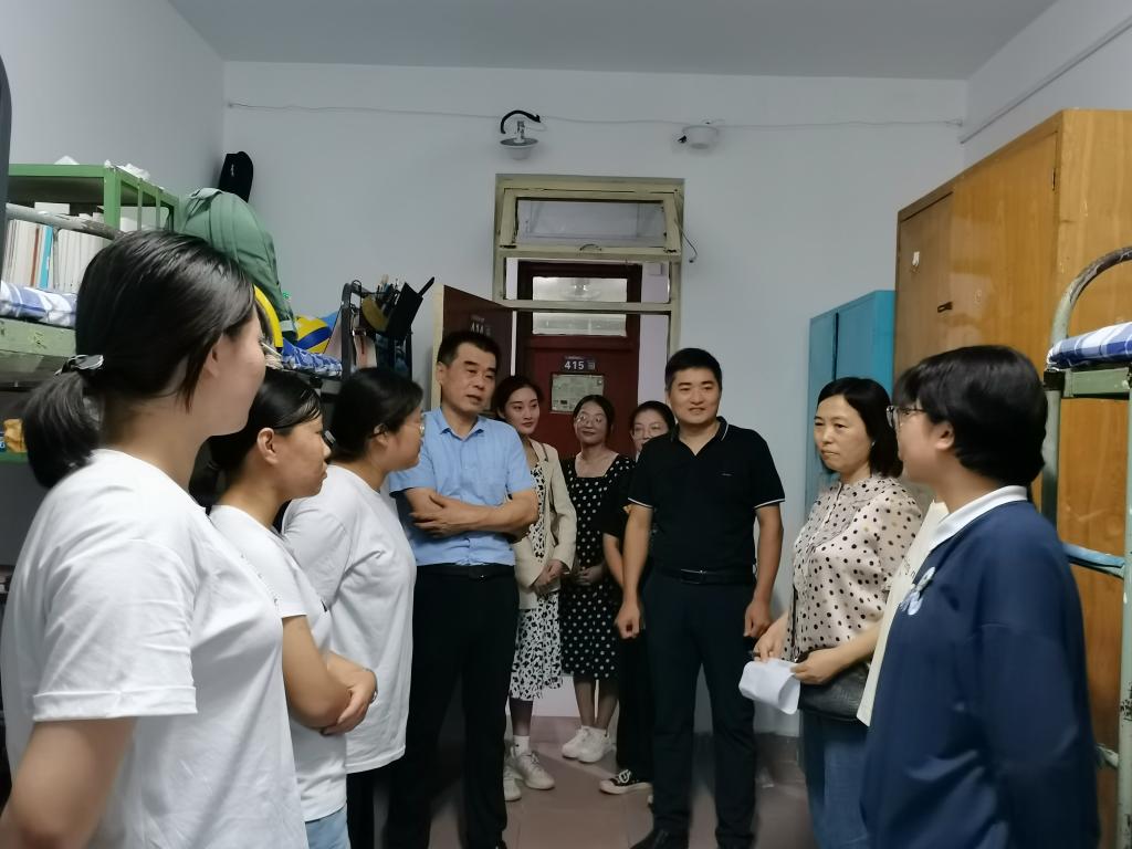 党委书记费沂涛,院长秦洪武,党委副书记王作茂,副院长王洪明、邢加新,全体辅导员及团委学生会干部代表走访学生宿舍,慰问2021级新生。