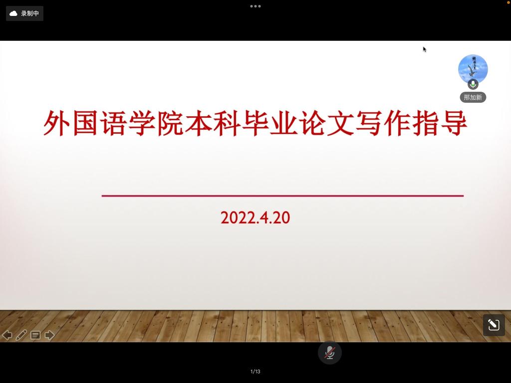 于线上召开2022届本科毕业论文研讨会。本次研讨会由2018级辅导员赵文彬主持,副院长邢加新受邀讲解,2018级全体本科生参加。