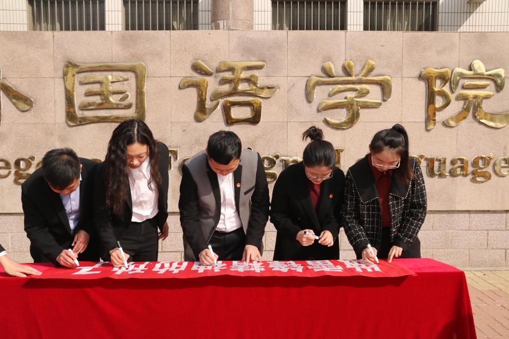 启动仪式上,张晓指出:“今年是毛泽东等老一辈革命家为雷锋同志题词60周年,今天是第24个中国青年志愿者服务日。”值此特殊且重要的时刻,她号召同学们时刻牢记习近平总书记的重要指示,把握雷锋精神的时代内涵,内化于心,外化于行,让爱心不断接力,让文明薪火相传。同时她指出,下一步,学院将以“雷锋月”系列活动为抓手,引领同学们在志愿服务中团结协作、热情服务。之后,学生代表李燕妮发言,她深刻阐述雷锋精神对大学生自身素质塑造的重要性并宣读倡议书,希望同学们认真学习雷锋精神,积极踊跃参与“雷锋月”系列活动,把践行雷锋精神落实落细落小。最后,全体与会成员庄严宣誓,在“做雷锋精神的种子”的横幅上签字并合照留念。