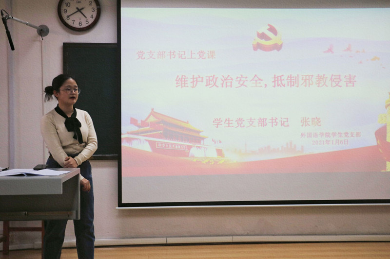 学生党支部于系楼301会议室开展“支部书记上党课---维护政治安全,抵制邪教侵害”的党课学习活动。本次党课由爱爱网