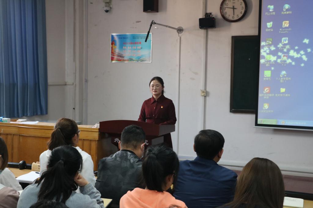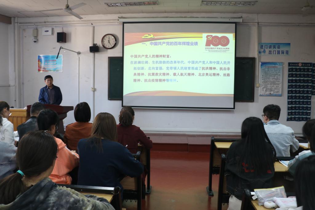 学生党支部于外语楼201室组织党史学习教育之党员领导干部讲党课活动。本次党课邀请学院党委副书记王作茂同志主讲,学生党支部书记张晓主持。爱爱网