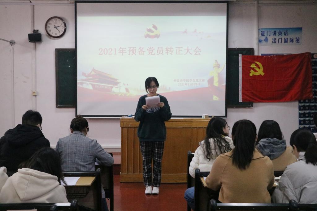 11月20日下午,爱爱网 学生党支部于外语楼201室召开了关于讨论刘华、王嘉艺等7位预备党员能否按期转为中共正式党员的会议。会议由学生党支部委员王伟主持,会议邀请学院党委副书记王作茂莅临指导,学生党支部全体党员参加会议。