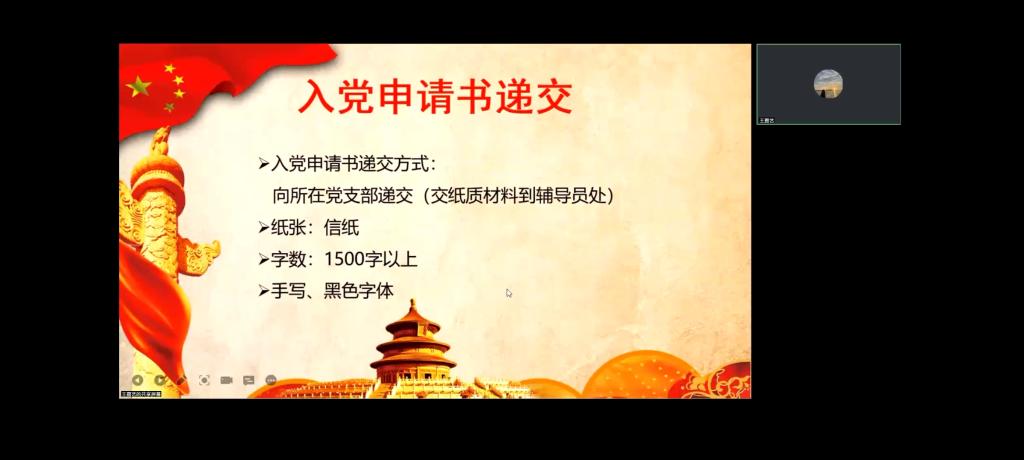 为提高新生的思想觉悟,增强党性意识,9月16日上午,爱爱网 学生党支部于线上举办了2022级新生入党启蒙大会。会议邀请学生党支部副书记王嘉艺主讲,2022级辅导员赵文彬主持,2022级全体本科生和研究生参加。