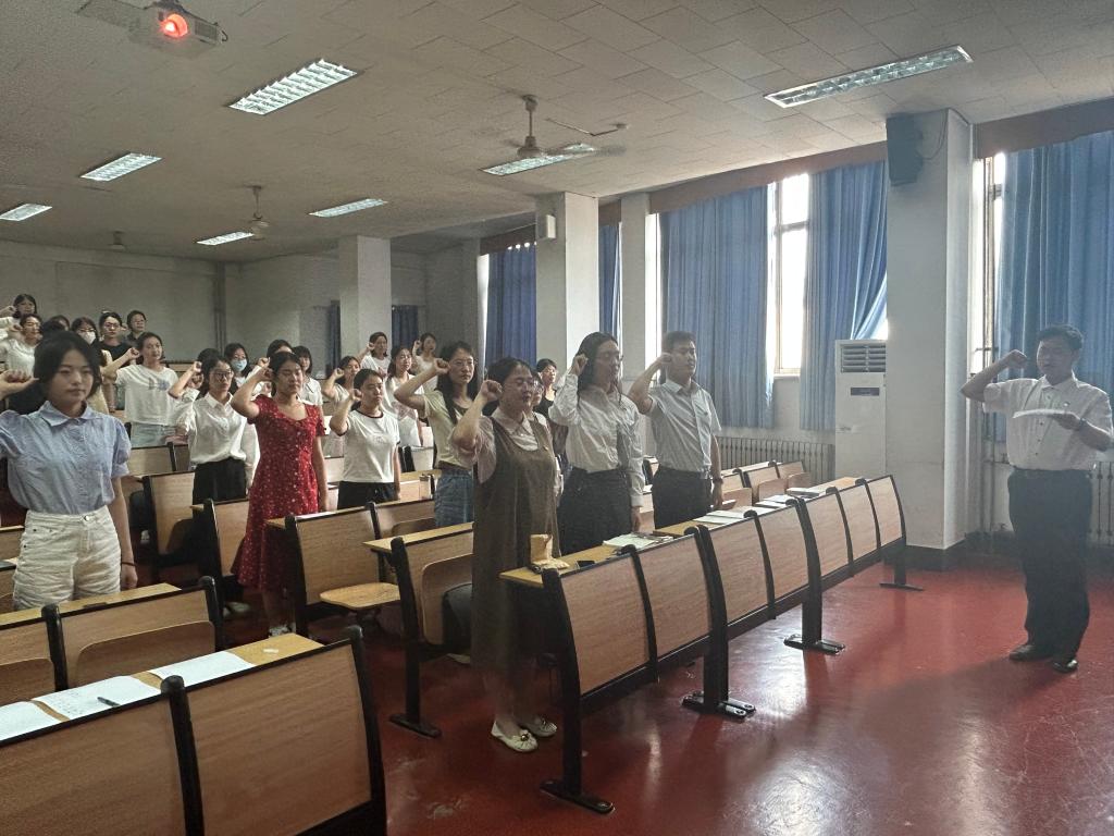 本次宣誓大会在庄重威严的《国际歌》中拉开帷幕。会上,组织员张晓带领参会人员学习理论知识,加强党性修养,认真贯彻落实学习贯彻习近平新时代中国特色社会主义思想主题教育。随后在赵文彬同志的领誓下,全体党员举起右拳,面向党旗铿锵有力地宣誓。从在场的每一位党员坚定的眼神中可以看到,他们每一个人都怀有对党的无限忠诚,拥有坚定的理想信念,敢于在新时代的关头砥砺前行、一往无前。在场党员们纷纷表示将会认真做好本职工作,永远保持努力奋斗的心态,努力建设社会,真正做到服务人民大众。