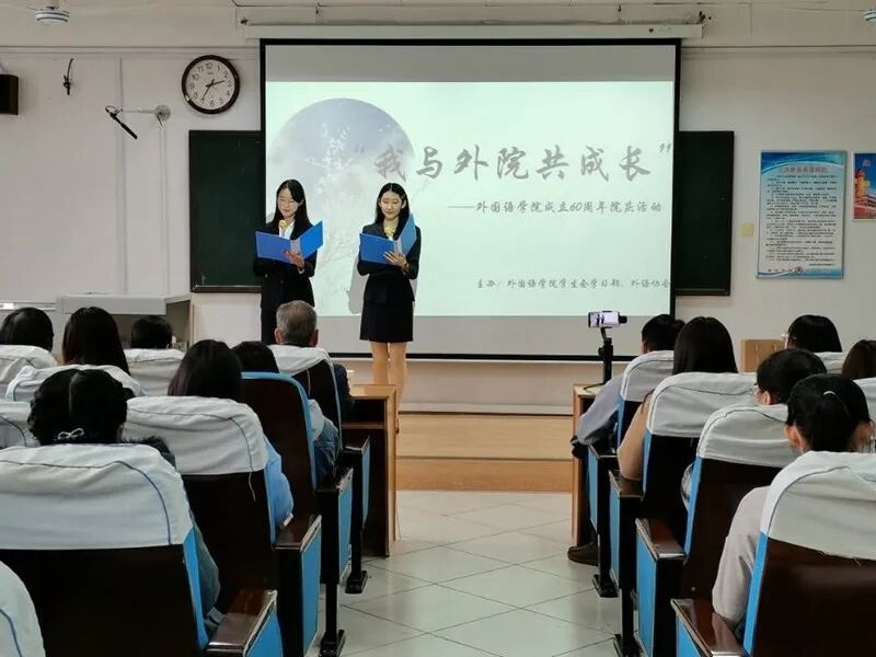 60周年华诞,提高我院学子外语表达能力,活跃校园文化氛围,外语协会与学习部举办了“我与外院共成长”讲故事比赛。参赛选手们都以别出心意的方式分享了自己与外院的故事,此次比赛的举办不仅分享了外院与同学们共同成长的故事,同时也提高了同学们演讲和综合运用语言的能力。