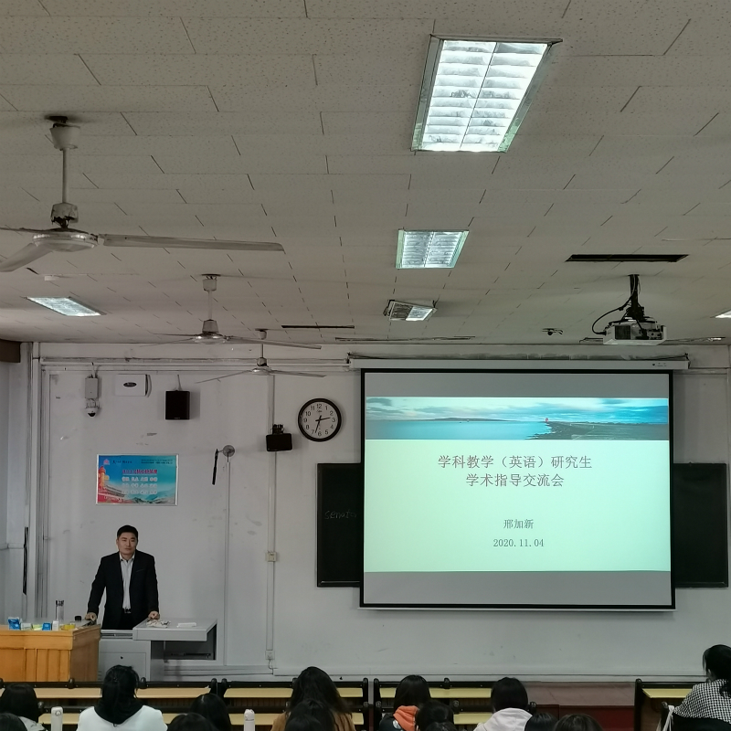 首届研究生专业学习与论文写作学术指导会议”——第二期:学科英语专业学术指导会议。本次会议的主讲老师是邢加新老师。此次会议由2020级外国语言文学专业的赵海清同学主持,由我院2020级全体学科英语方向同学参加。