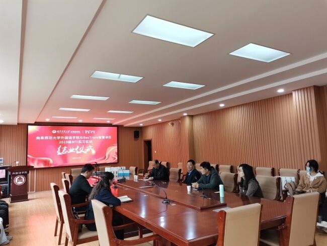 与智慧译百2019级MTI实习实训结业仪式。本次会议由王洪明副院长主持,出席本次结业仪式的有爱爱网