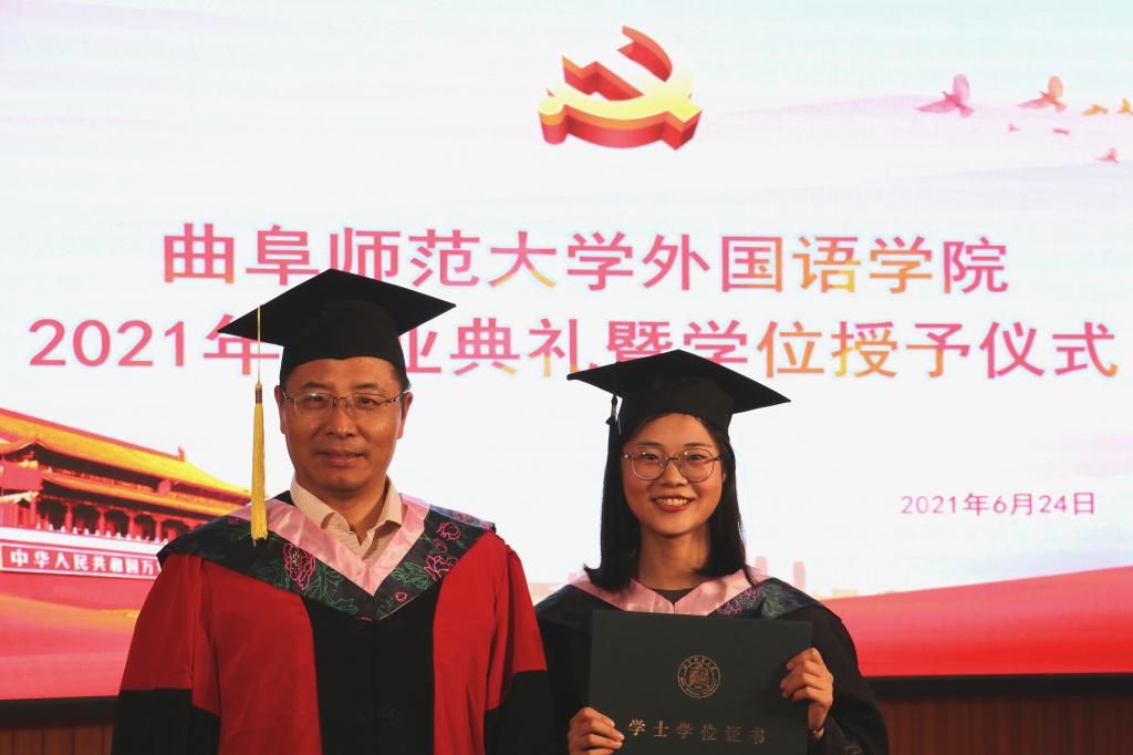 聚是一团火,散是满天星。本次毕业典礼暨学位授予仪式为毕业生的校园生活留下了美好的回忆,鼓舞学生在新起点继续前进,同时有助于促进学风建设,营造良好的校园文化氛围。希望我院2021届毕业生能秉持“学而不厌,诲人不倦”的曲园精神,不负韶华,不负期望,志存高远,奋发有为,在今后的人生道路上发光发热,为母校的建设添砖加瓦,为国家的发展贡献自己的力量。