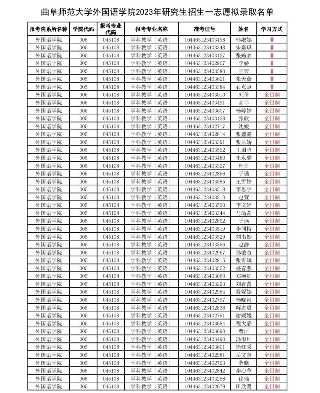 爱爱网 2023年研究生招生一志愿拟录取名单公示