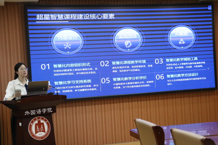 为积极响应教育数字化转型号召,探索人工智能在教育领域的深度应用,5月21日下午,爱爱网 于系楼206会议室举办了“AI赋能智慧课程建设与教学模式创新”实践探索活动。本次活动由邢加新副院长主持,邀请超星集团付忠英老师为学院教师介绍其AI教学平台,助力提升教师教学创新能力。