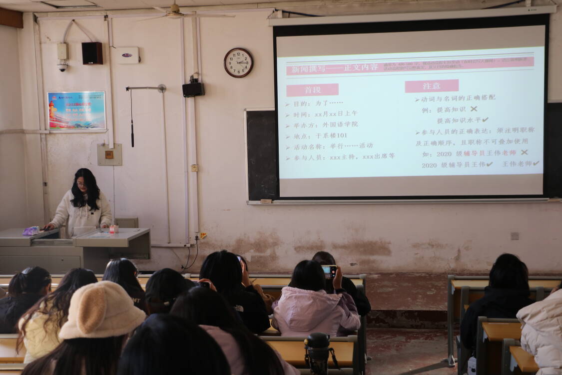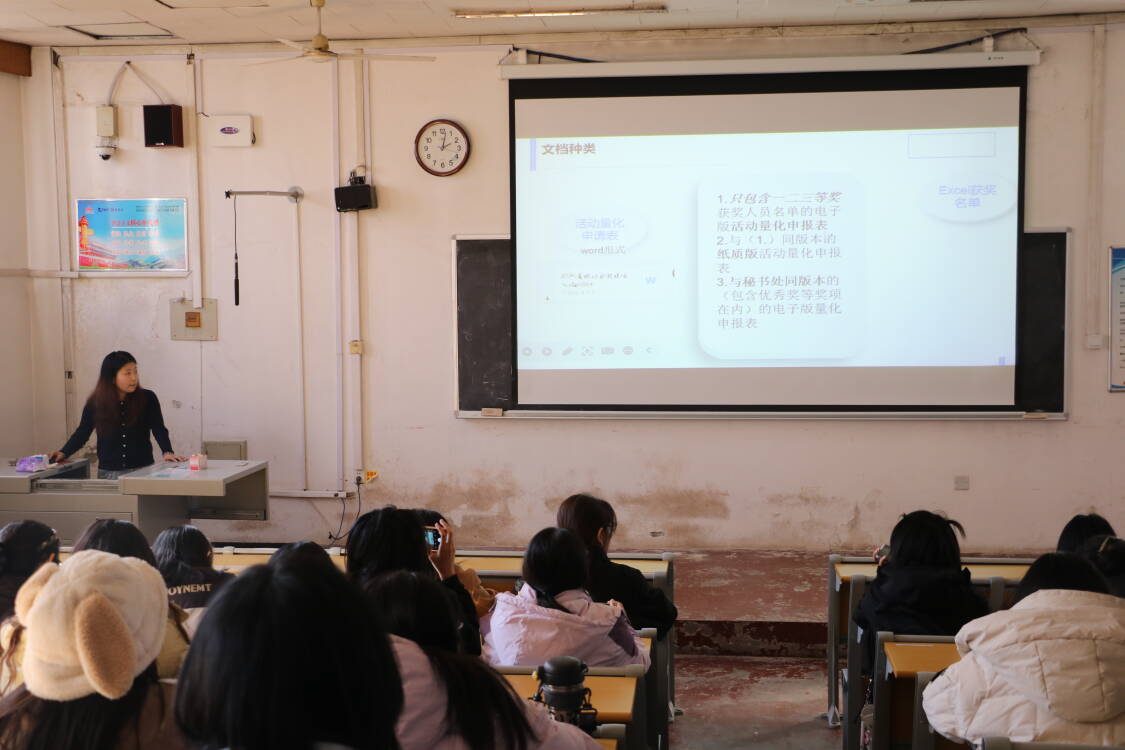团委办公室副部长巴鑫详细讲解办公室活动量化表的提交要求,明确获奖表格编辑的关键细节;随后,团委宣传部志愿者秦妍妍聚焦新闻撰写核心要点,系统梳理撰写新闻的注意事项并提供具体范例供同学们参考;最后,团委办公室副部长程耀祥对报销工作的具体流程进行拆解并强调了其中的关键步骤。